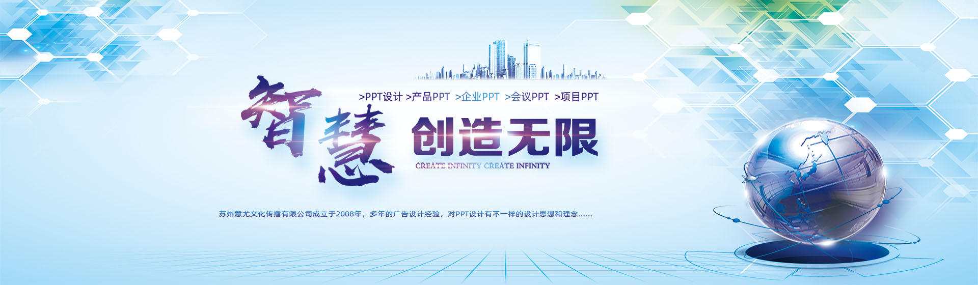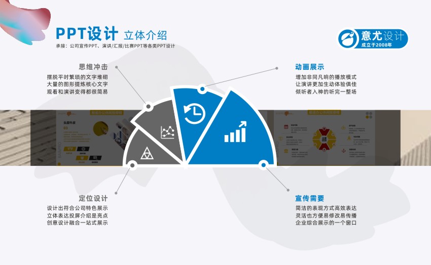 蘇州意尤文化傳播有限公司是一家有著多年廣告設(shè)計經(jīng)驗的蘇州知名廣告企業(yè) 主要業(yè)務(wù)有蘇州PPT設(shè)計、蘇州產(chǎn)品PPT設(shè)計、蘇州企業(yè)PPT設(shè)計、蘇州會議PPT設(shè)計、蘇州項目PPT設(shè)計、企業(yè)VI設(shè)計、設(shè)計印刷宣傳冊/樣本/單頁/名片等 自2007年成立以來,蘇州意尤廣告公司與蘇州及蘇州各市的幾百家中外企業(yè)進(jìn)行了廣告設(shè)計合作,經(jīng)過多年發(fā)展公司已形成了以企業(yè)PPT設(shè)計、企業(yè)VI設(shè)計,廣告設(shè)計,廣告印刷,樣本設(shè)計,宣傳冊設(shè)計,名片印刷,菜譜制作,單頁,宣傳單等一批特長業(yè)務(wù),相信在各位新老客戶的關(guān)心下,本公司會得到更大的發(fā)展,同時為客戶的發(fā)展宣傳保駕護(hù)航。